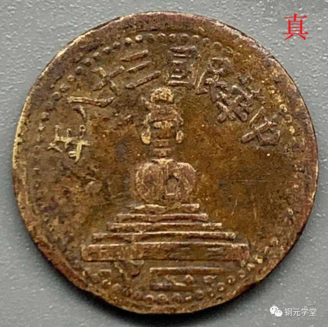 白塔一分目前我见过的真品一共有3版。这是其中固定的一版,古布图上有凸起。以我过手的经验来说,白塔一分的好品真是难。一是本身打得浅,二是流通的厉害,三是很多包浆都特重。