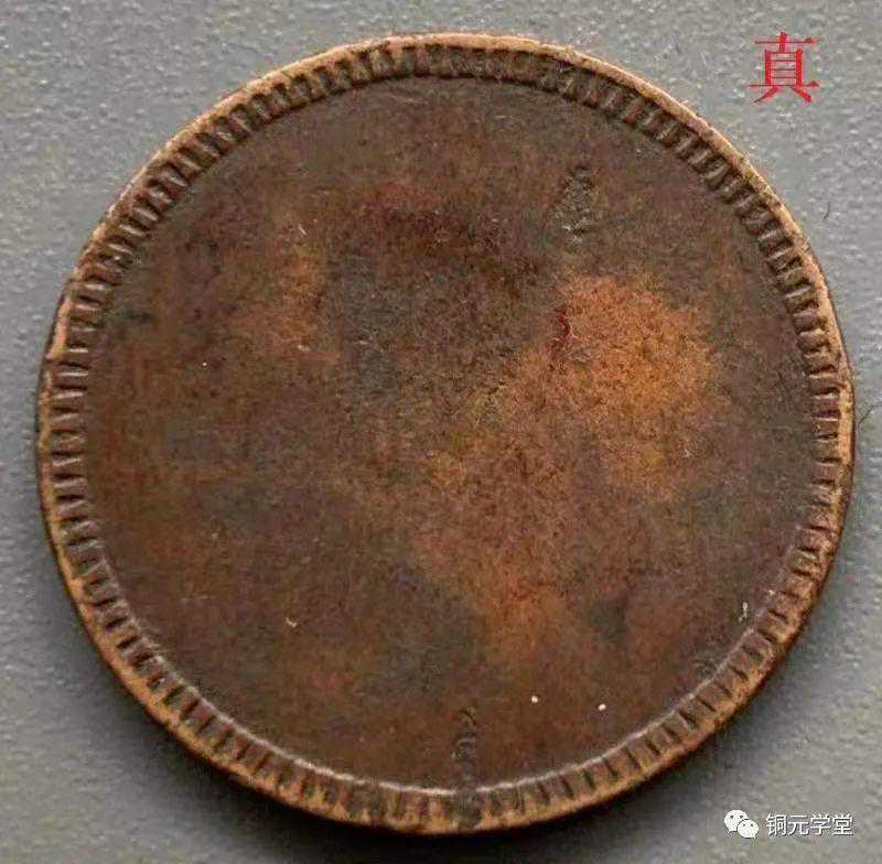 这枚福建五文短尾看不太清晰,但是有一点看上去就觉得怪异,背龙3点位置好像有后滚边的流铜。福建五文短尾,都是浅打,凸龙,至今未见全鳞。币缘如果打出挤压纹来,说明是深打,即存在早期币模一小批全鳞的可能性。这点与我们看到的真品的打制状态有差异。