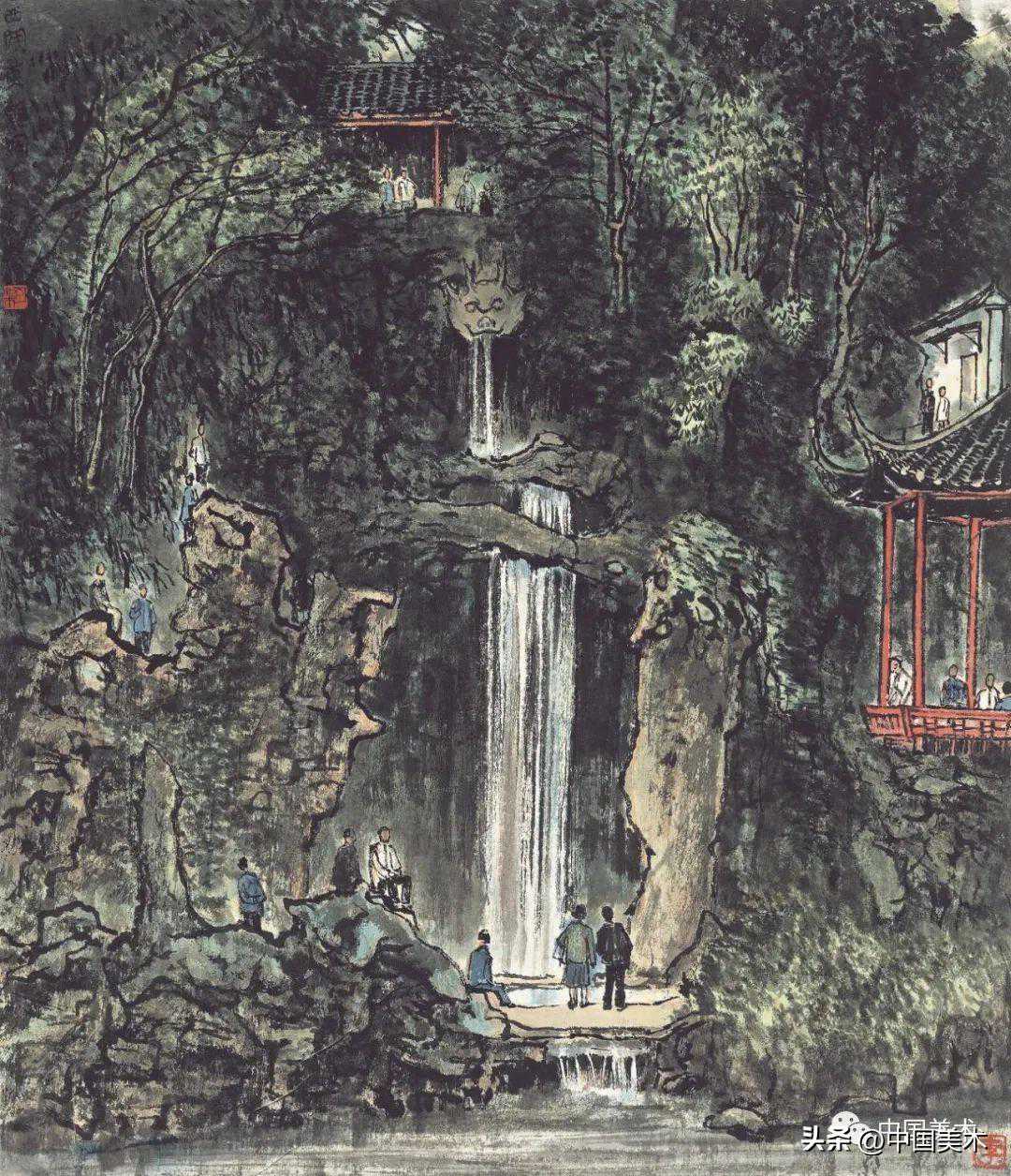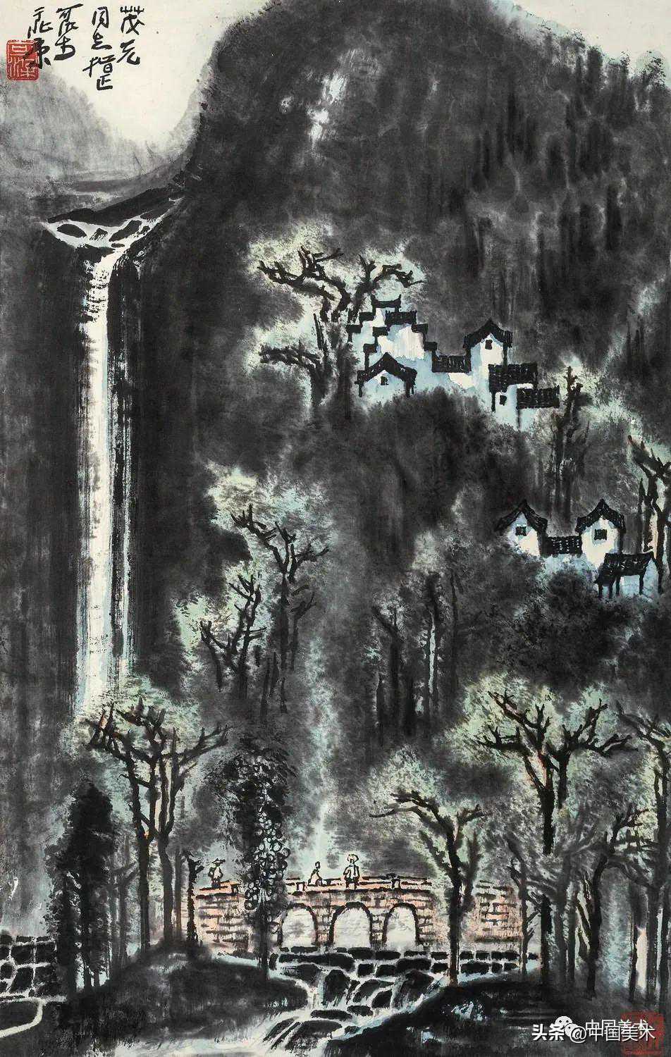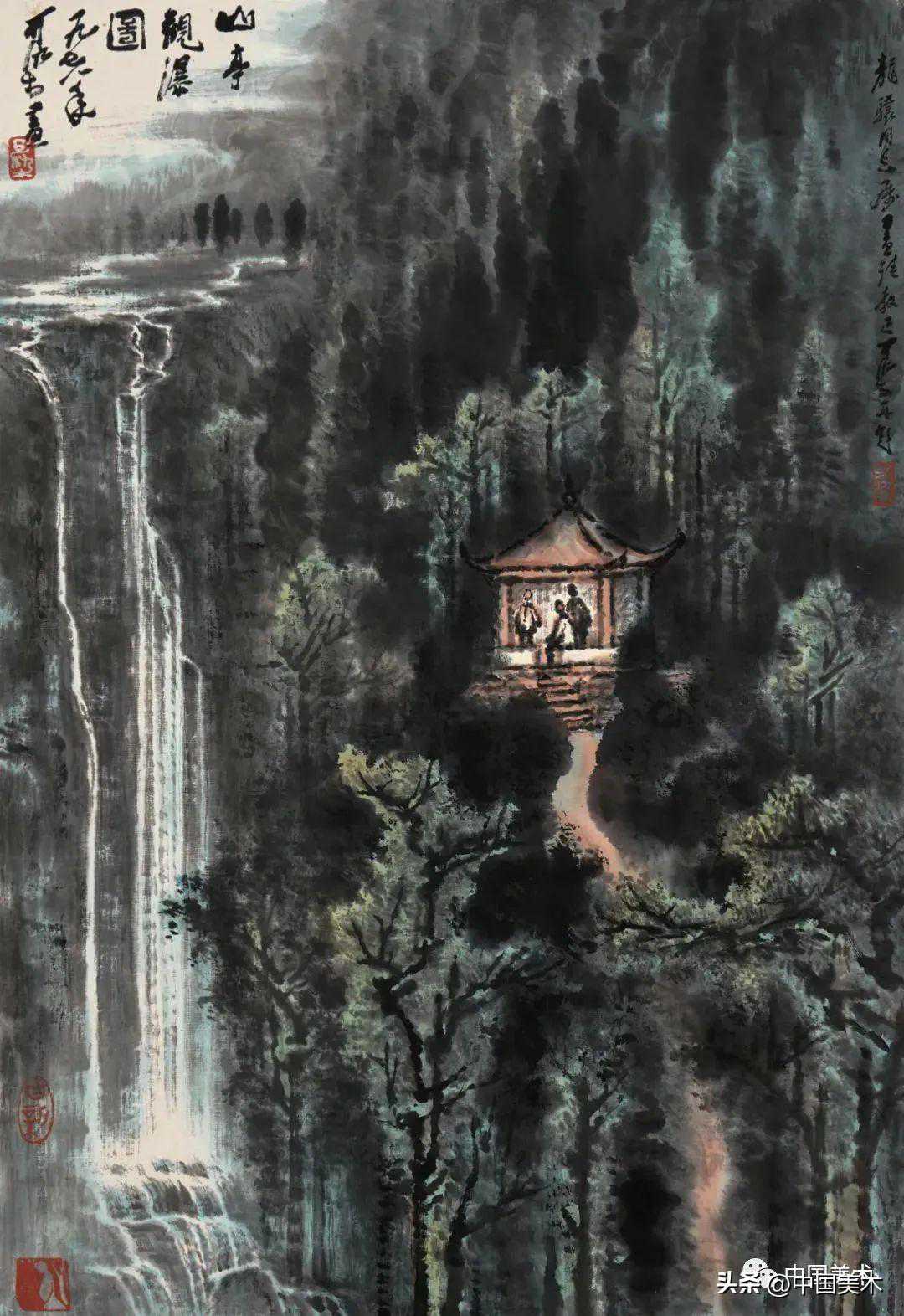 李可染林中飞瀑