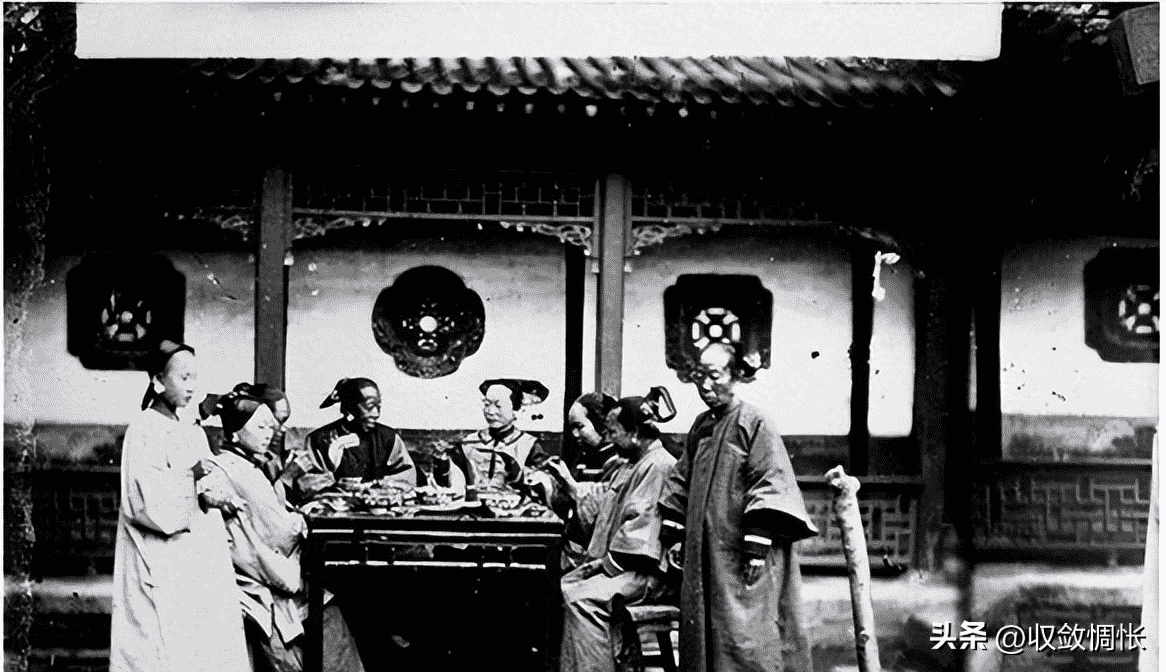 正在用餐的满族妇女,满族妇女不用缠足的。