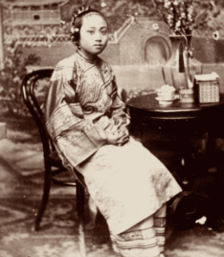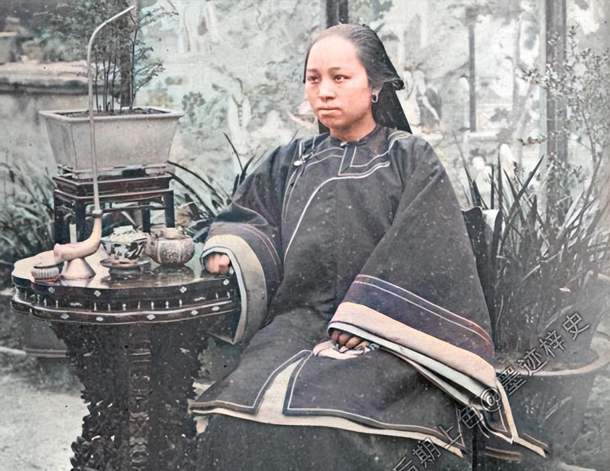 汉族富贵人家妇女着装,对襟、大袖、下长及膝。