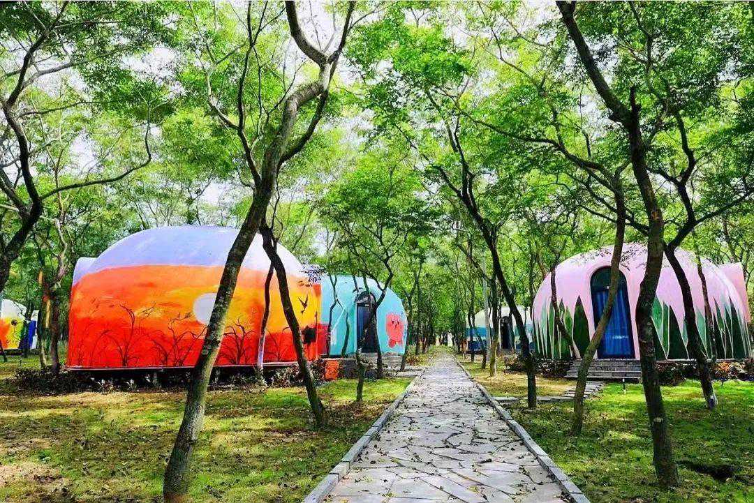 当夜幕降临,50座采用环保材料建造的极具田园特色的度假哆咪屋坐落在碧涛万顷的万亩花梨林中,推开门即可享受大自然的无限风光,仰望天空之中星空烂漫、苍穹无限;并感受着花梨木带来的自然清香的大自然空气。8个房车与景区内花海景观近交相辉映。不管是在度假哆咪屋内还是躺在房车内,都是置身郁郁葱葱的花梨林中,观赏着花海美景。环境清幽,树木与鲜花遍布每个角落,浓郁的热带风情扑面而来。优美的绿植既可避免露营地游客被强烈的阳光晒伤。空气清新凉爽宜人。为游客提供了理想的休息聊天场所。在这里可以呼吸到更纯净的空气,一派幽静雅致,浑然天成。此时,将世俗的烦恼抛开,尽情享受壮丽景观与自然美景。