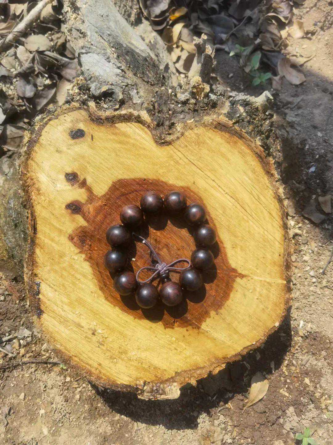 到了近现代,黄花梨的产量越来越少,已经很难有大料支撑做成家具,于是有人将黄花梨木车磨制成木珠串成手串,深受文玩玩家们的喜爱,加之一些黄花梨木在生长过程中因为外部环境的关系出现结节,疙瘩等状况,枝干内部的纹路发生扭曲,就形成了天然的鬼脸,若是黄花梨手串上带有比较好的鬼脸,其价值也会得到进一步提高。