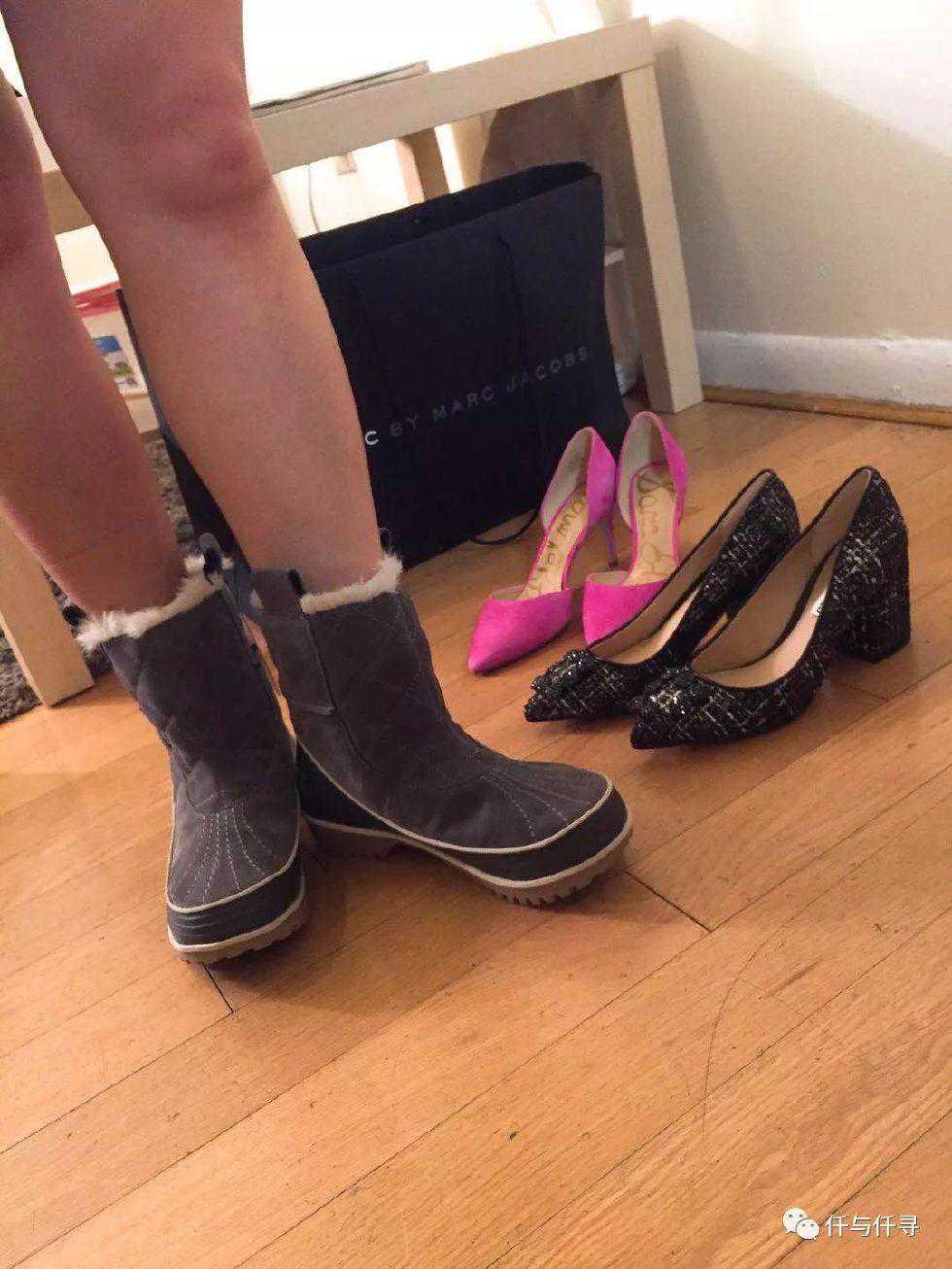 在乱糟糟的鞋架上,还收了香艳桃红高跟鞋与KarlLagerfeld的粗跟高跟鞋,单价都不过70刀。
