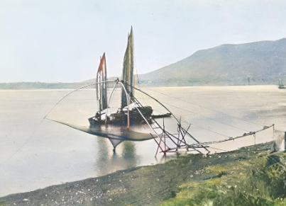 在长江边设网捕鱼