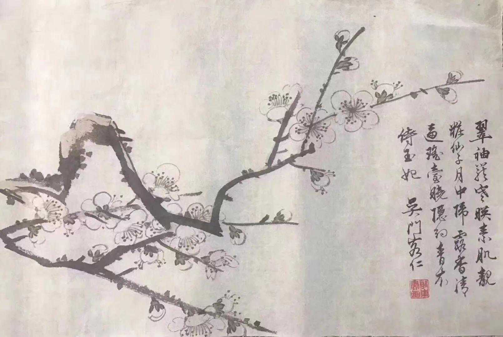 施仁题画诗《墨牡丹四首》所云“略饶姿艳逊梅清,笑爾空擔富贵名。自向墨林借膏沐,百花相见輙心倾。当年捧砚屈红装,佇奏清平新乐章。餘瀋淋漓襟袖偏,身惹浔墨花香。着墨无多亦耐看,花影翻作侧金盘。不從正面工铺叙,高手为文法一般。戏将水墨替丹砂,写作春风拂槛花。髣髴华清新浴罢,贴身衫子罩乌纱。”