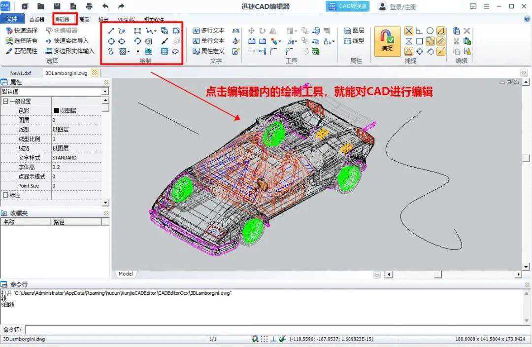 打开软件,将上方功能切换到【编辑器】,选择下面的【绘制】工具,就能对打开的CAD文件进行绘制了,操作非常方便!