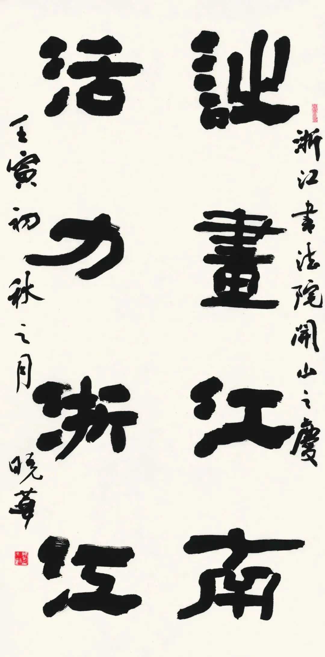 本次书法特展以“诗画江南,活力浙江”为主题,要求参展作品以历代有关诗词联句或自作诗词,反映浙江山水之美、人文之美、发展之美、和谐之美,彰显浙江书法界助力打造省域品牌、展现浙江魅力的使命担当。可以说,这不仅考验书法篆刻家们的手头功夫,也考验文化素养。