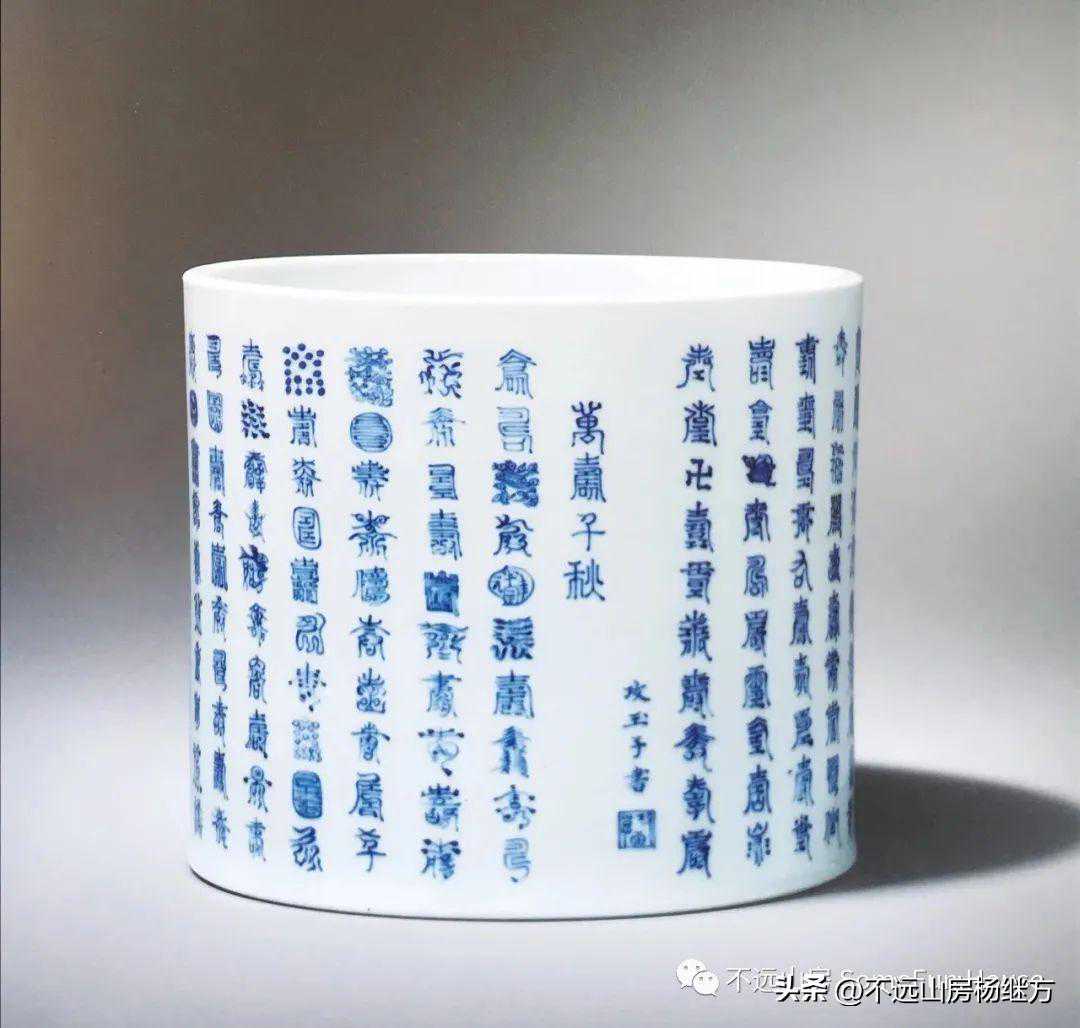 清康熙青花“万寿尊赋”笔筒北京故宫博物院藏
