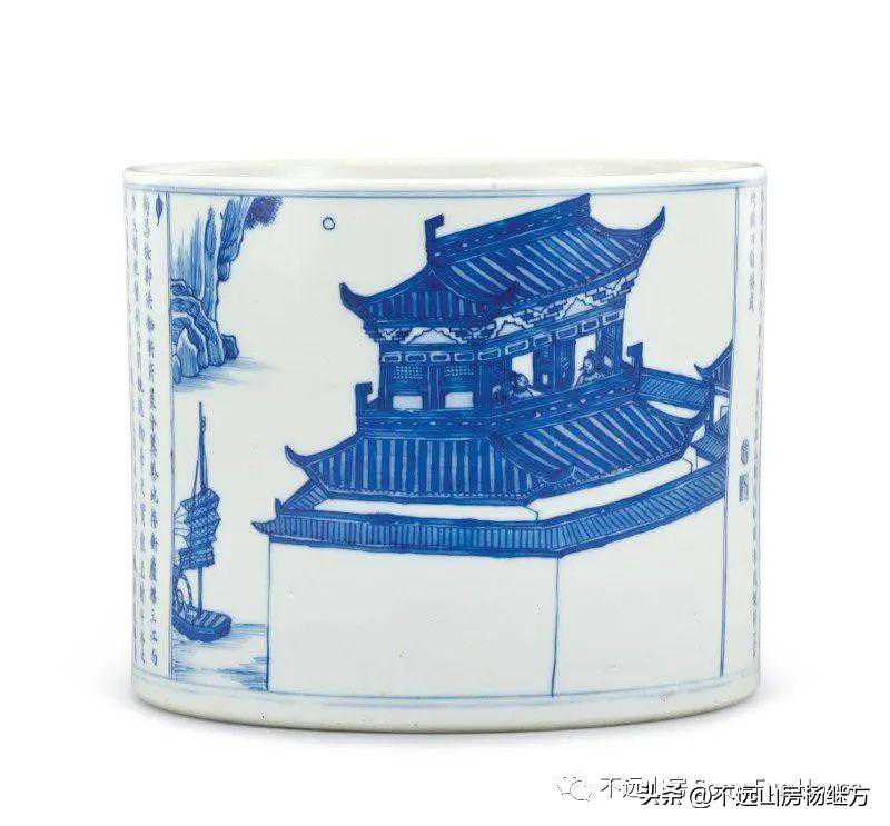 北京翰海2003春的康熙青花醉翁亭记笔筒,有官窑款