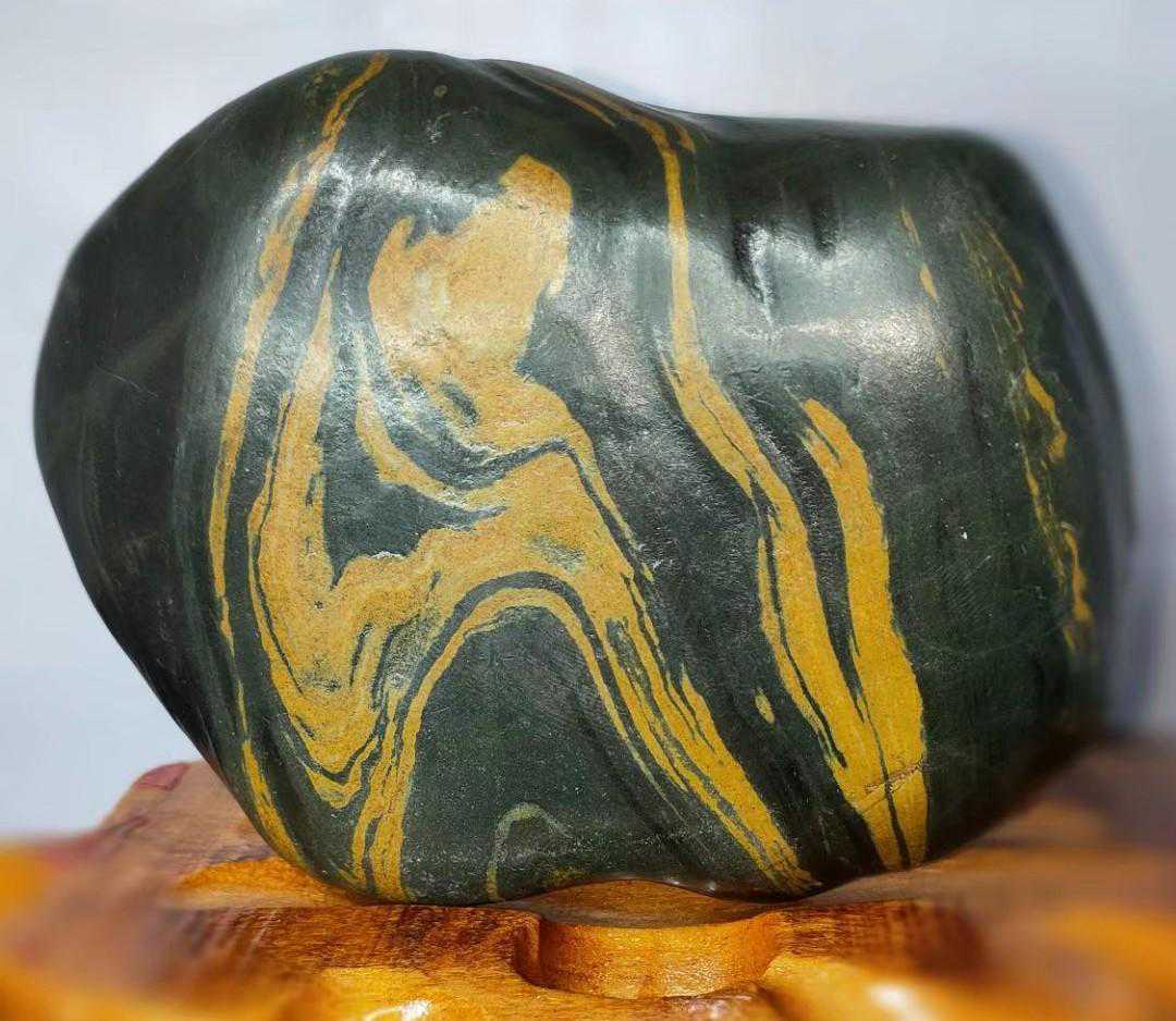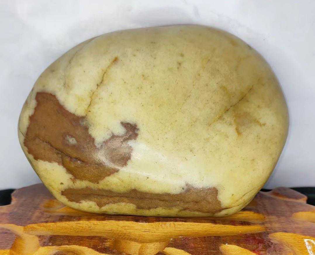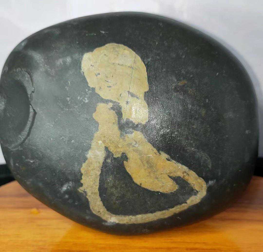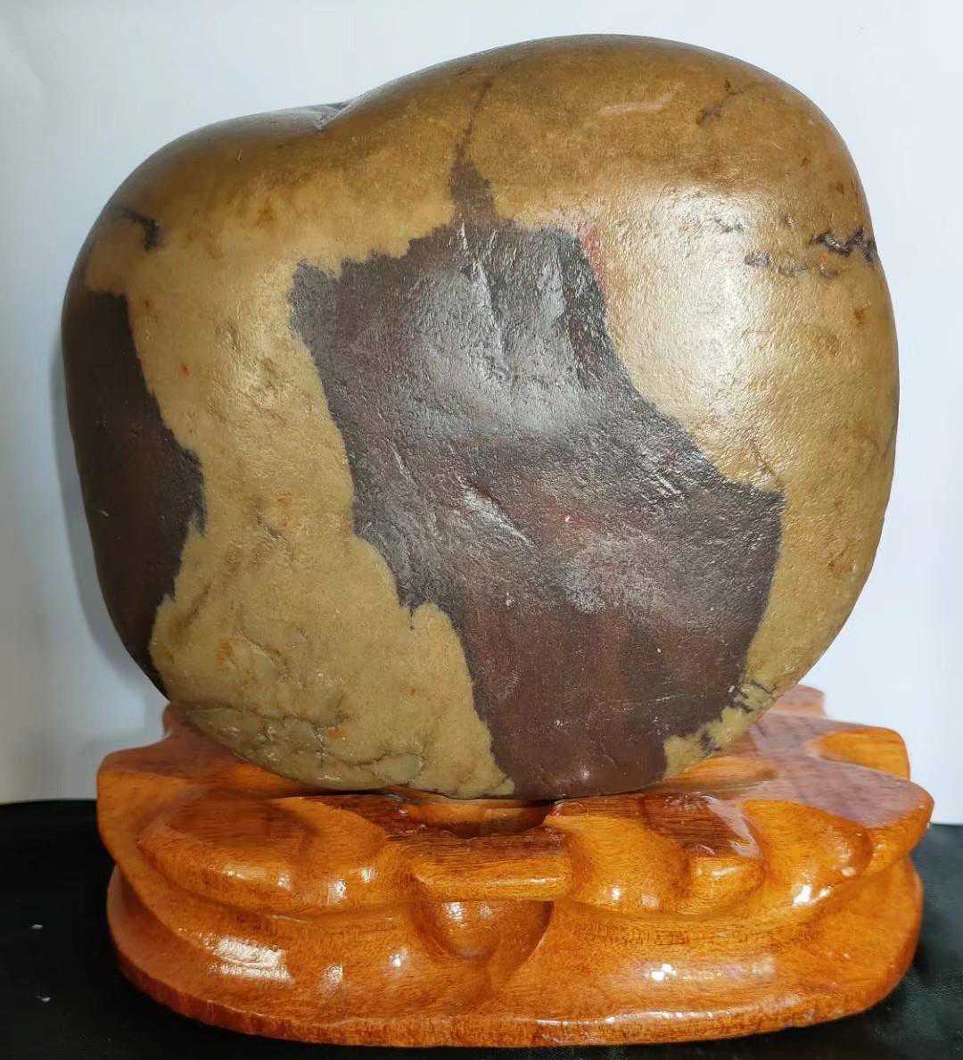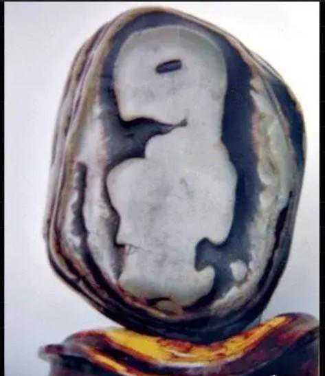 最近十几年随着社会发展国富民强,赏石艺术受到越来越多的人喜欢,有资源的去捡,没资源的去买。于是捡石大军日益壮大,也催生了一些“天价”奇石的成交,我们熟知的《人之初》上千万,《寿》字石80万成交,《悟空出山》13万成交。这些石头都是黄河石。下图中第二方石是我收藏的与名石《人之初》相似度极高的一块黄河石。