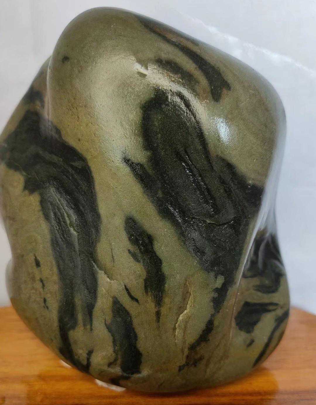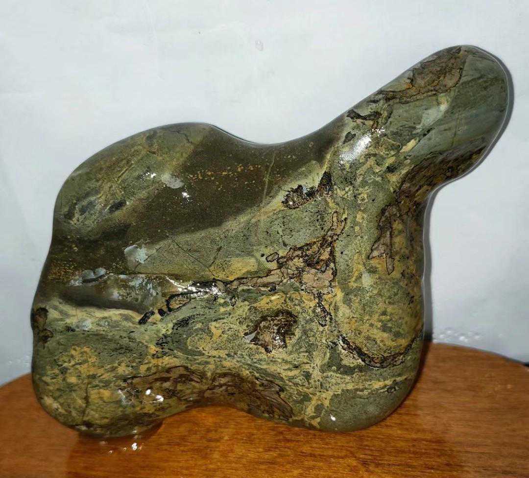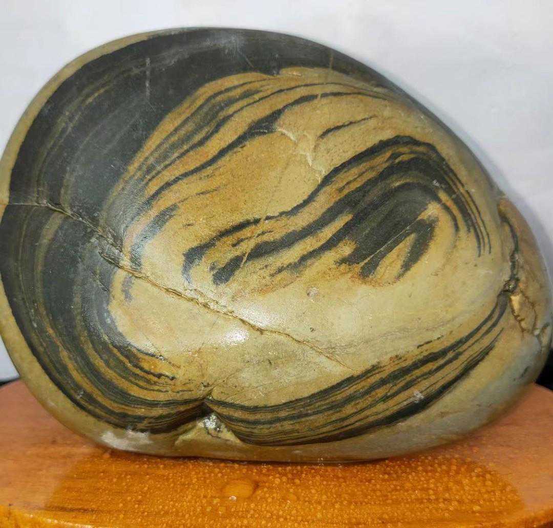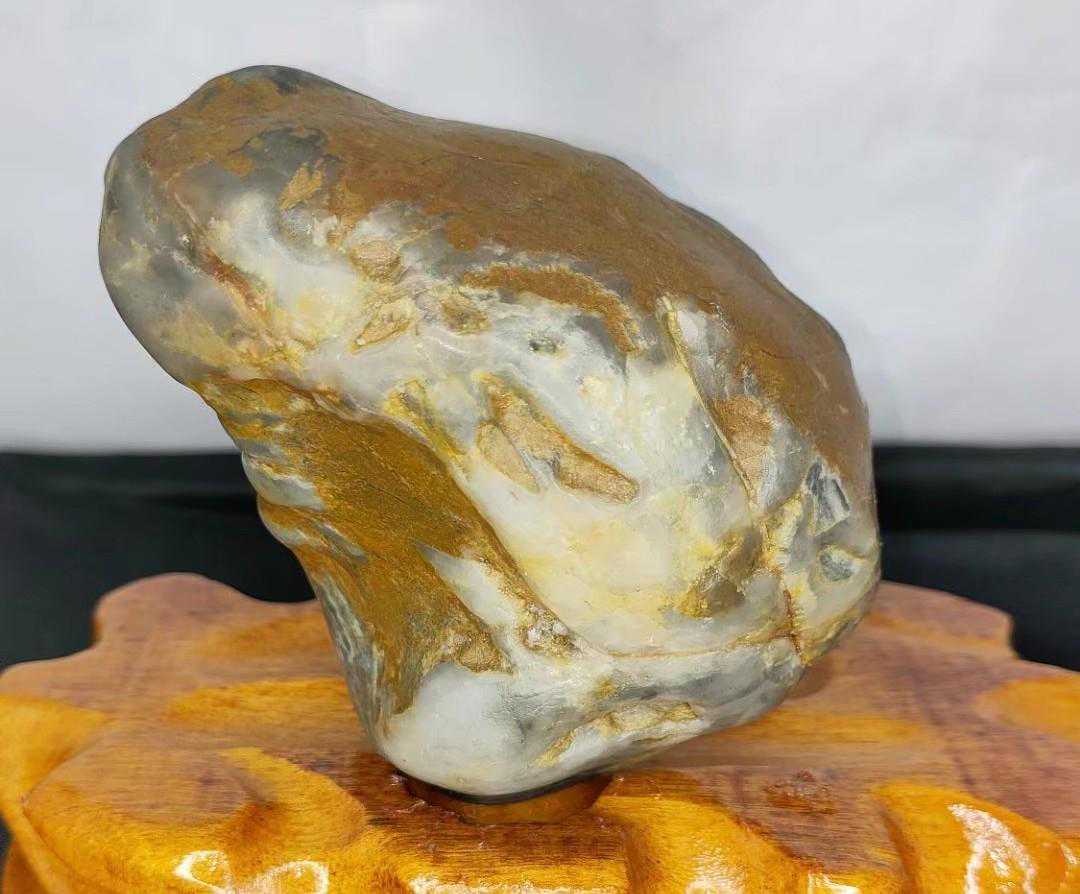 最近十几年随着社会发展国富民强,赏石艺术受到越来越多的人喜欢,有资源的去捡,没资源的去买。于是捡石大军日益壮大,也催生了一些“天价”奇石的成交,我们熟知的《人之初》上千万,《寿》字石80万成交,《悟空出山》13万成交。这些石头都是黄河石。下图中第二方石是我收藏的与名石《人之初》相似度极高的一块黄河石。