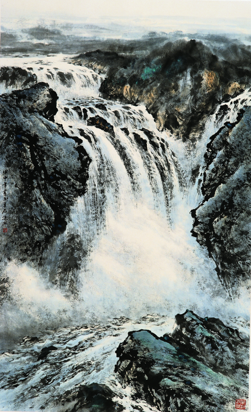 马流洲《瀑击千壑动》180x97cm2004年