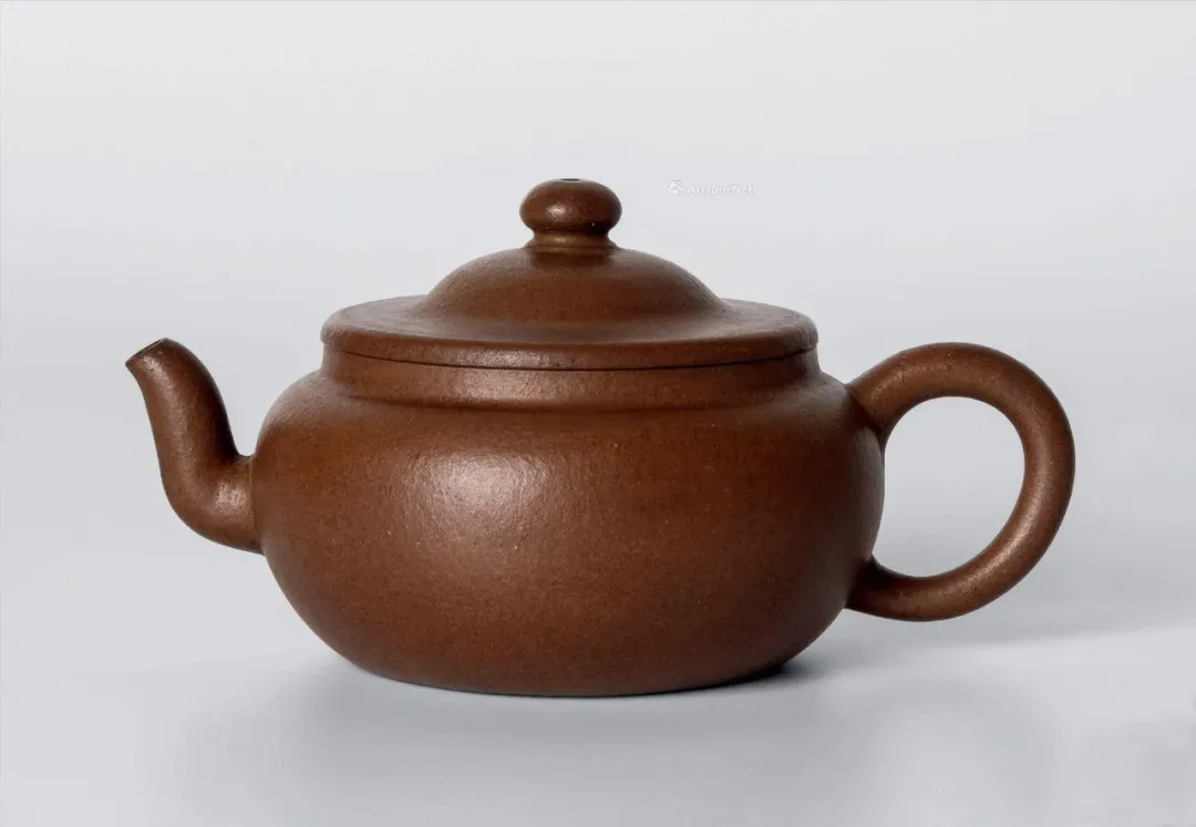 上接圆形壶钮,与壶身相协调,整器制工严谨,显古朴敦厚、清秀俏丽之美。