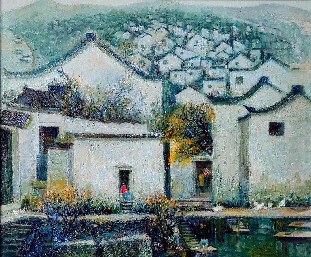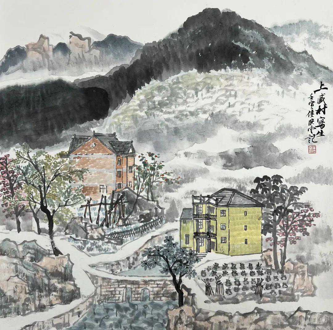 侯晓云中国画《富阳上臧村写生》40×40cm