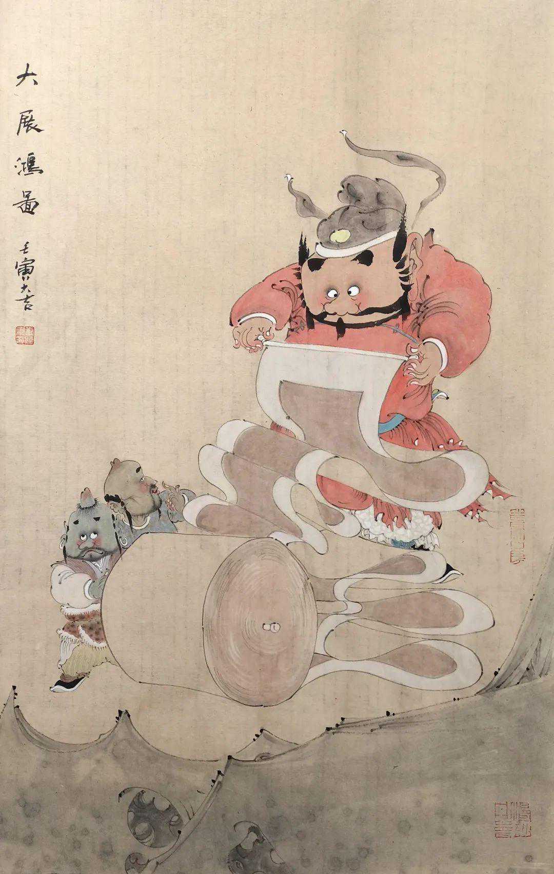 武国强绝版套色木刻《献寿》58x80cm