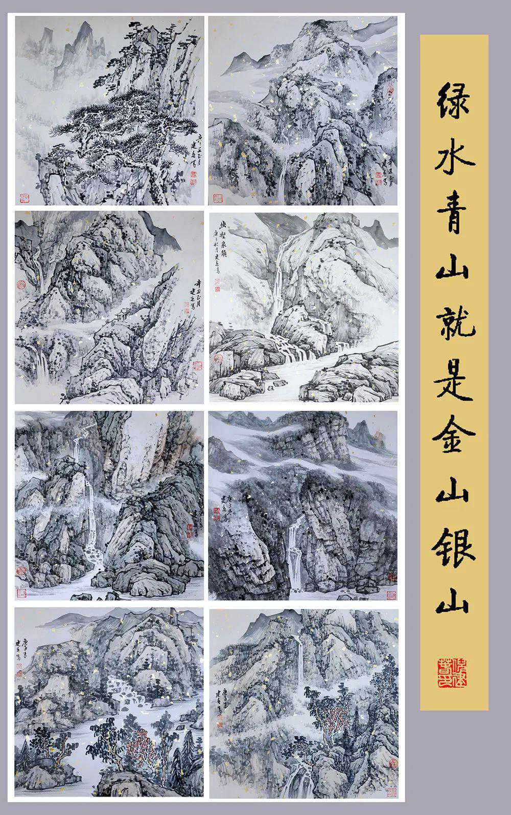 倪建春中国画组图《绿水青山就是金山银山》每幅50×50cm