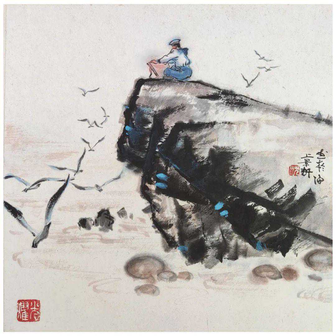 沈光耀中国画《待把海彊细描绘》50×50cm