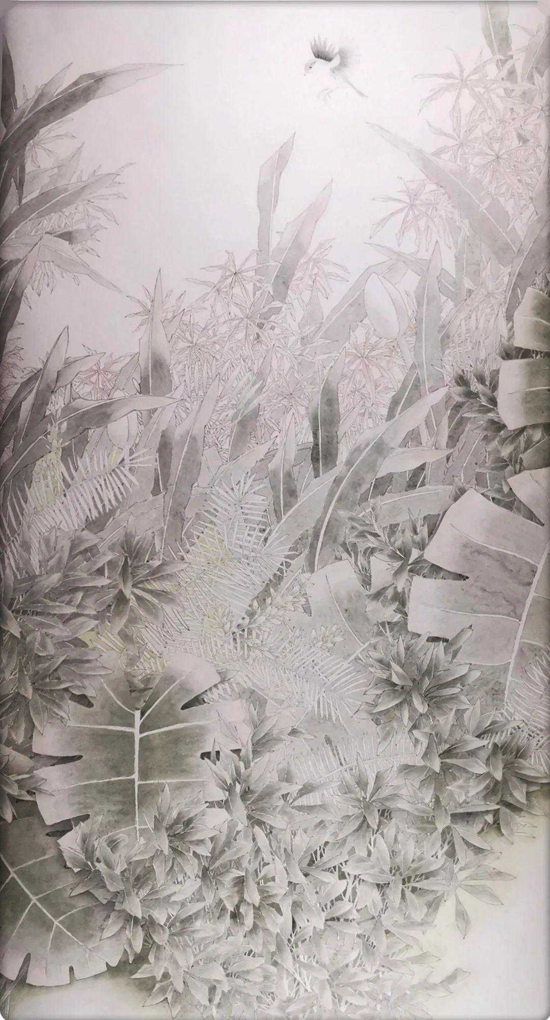 吴祝宁中国画《烟雨茶海》137x68cm