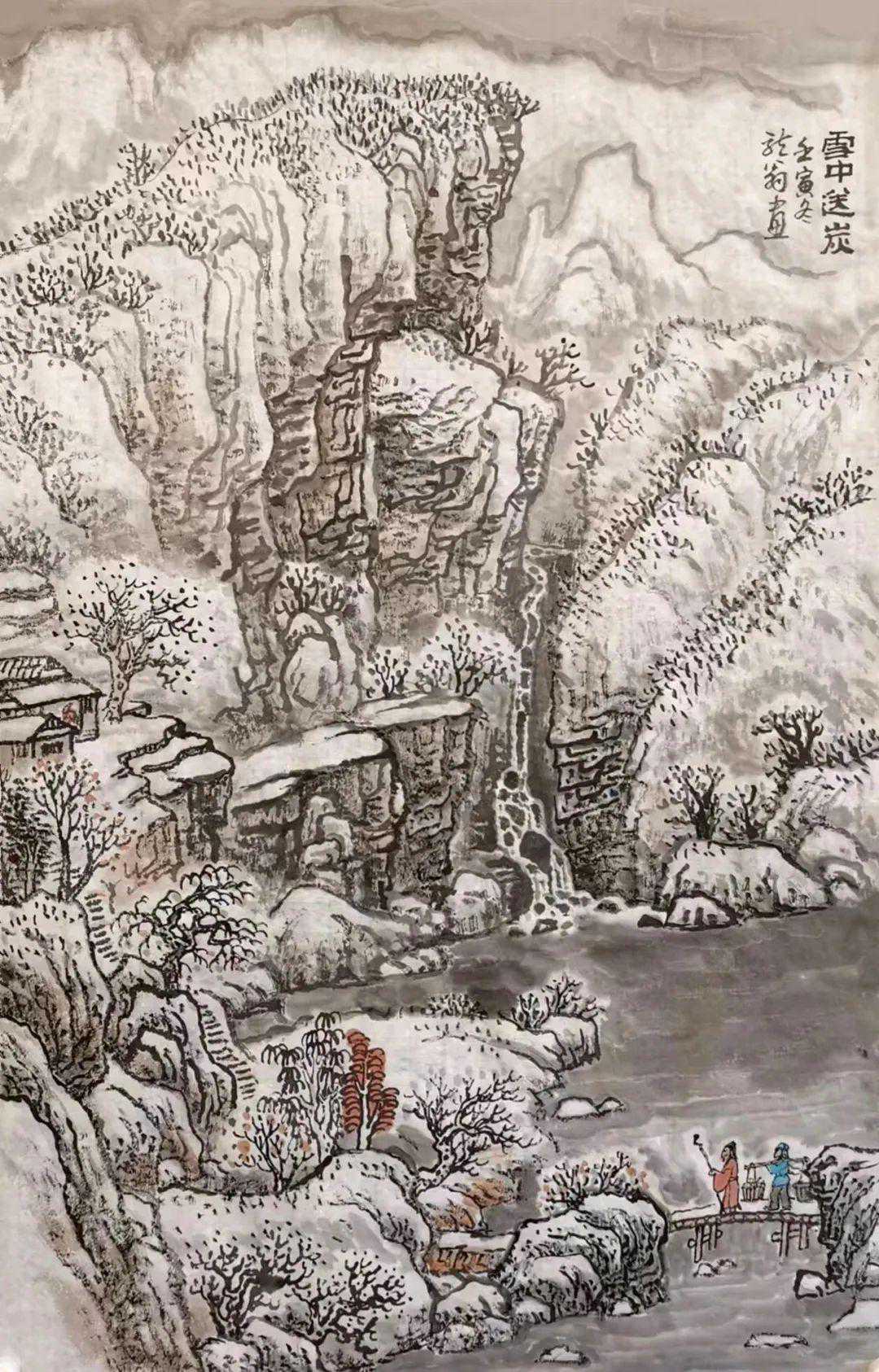 叶金福中国画《雪中送炭》46x68cm