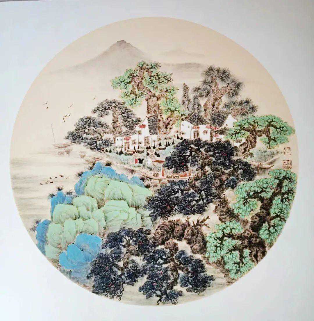 周忠树中国画《舍南舍北皆碧水》60X60cm
