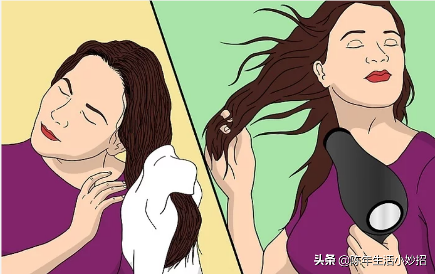 用洗发水和润发乳打理好头发,接着用毛巾或吹风机把头发弄干。