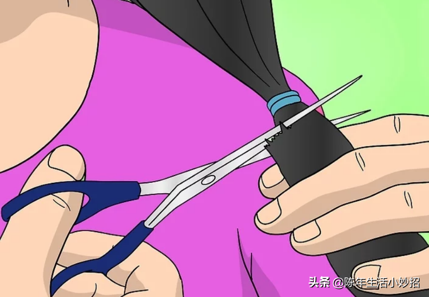 第六步:在皮筋正下方开剪头发,两边都如此。