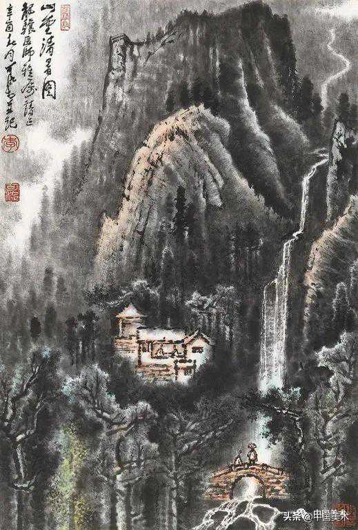 李可染林中飞瀑