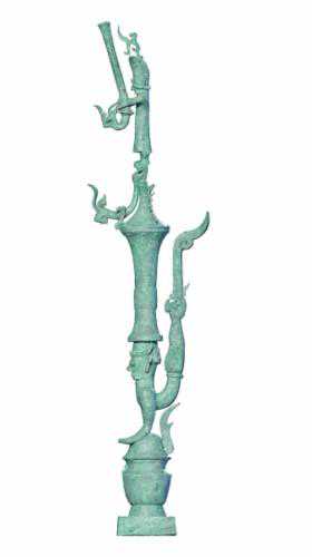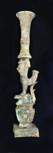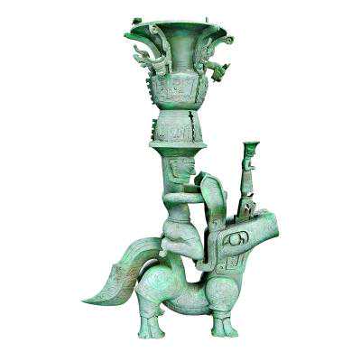 这是铜兽驮跪坐人顶尊铜像相对完整形态。
