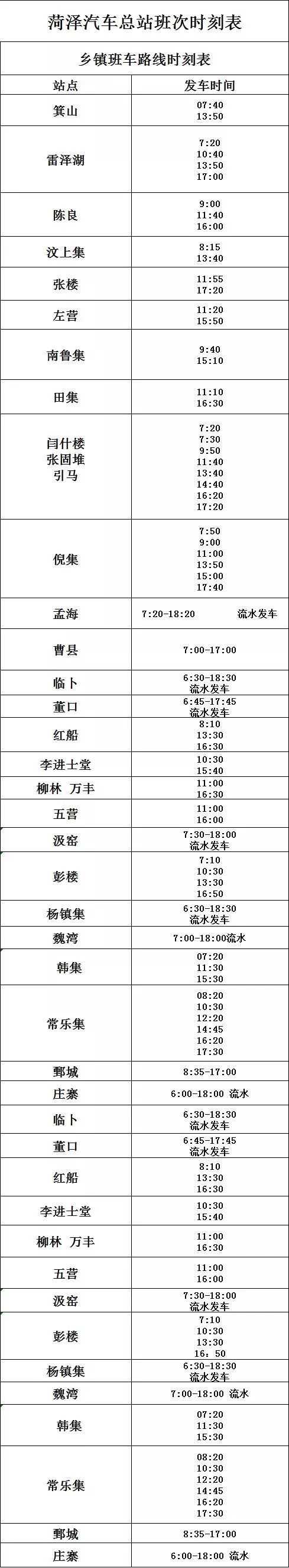 收藏!菏泽汽车总站最新班次时刻表,附最全省际、市际和乡 镇发车路线