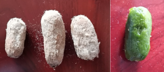 三颗毛冬瓜(左),剥皮后如玉似翠(右)