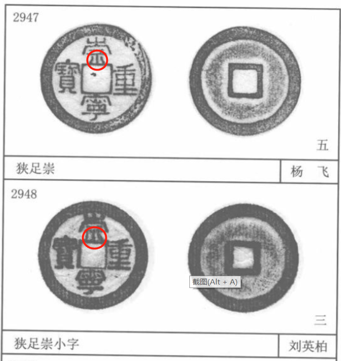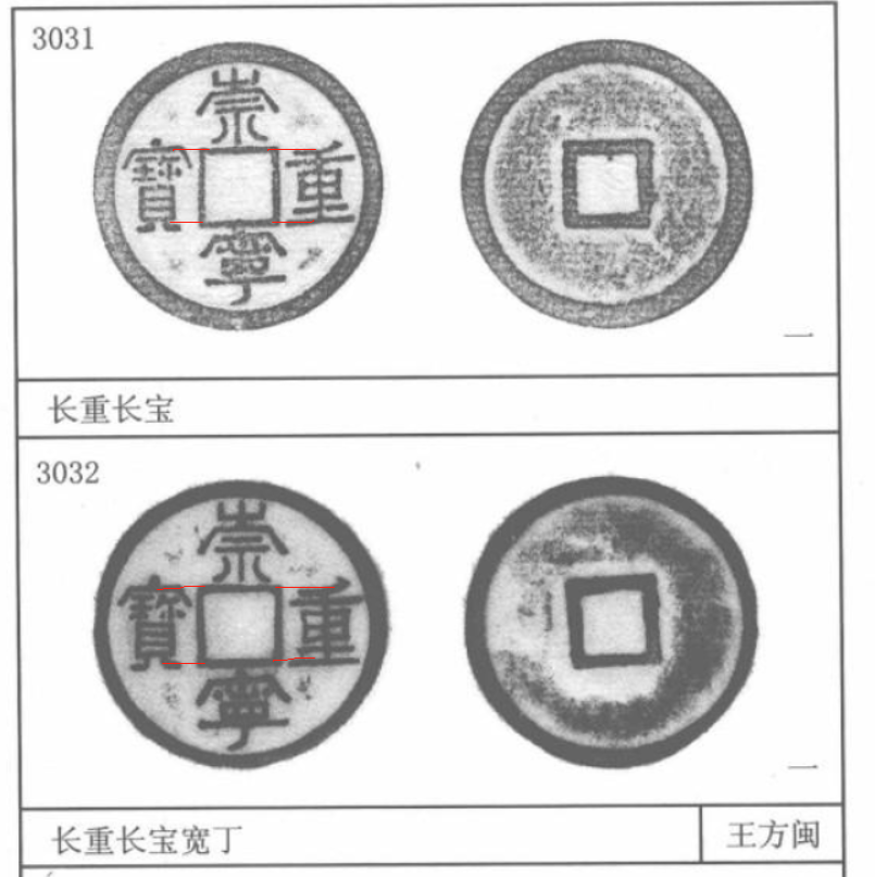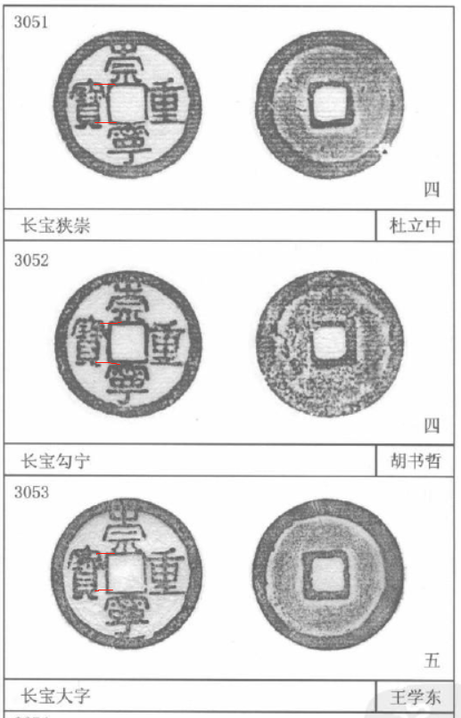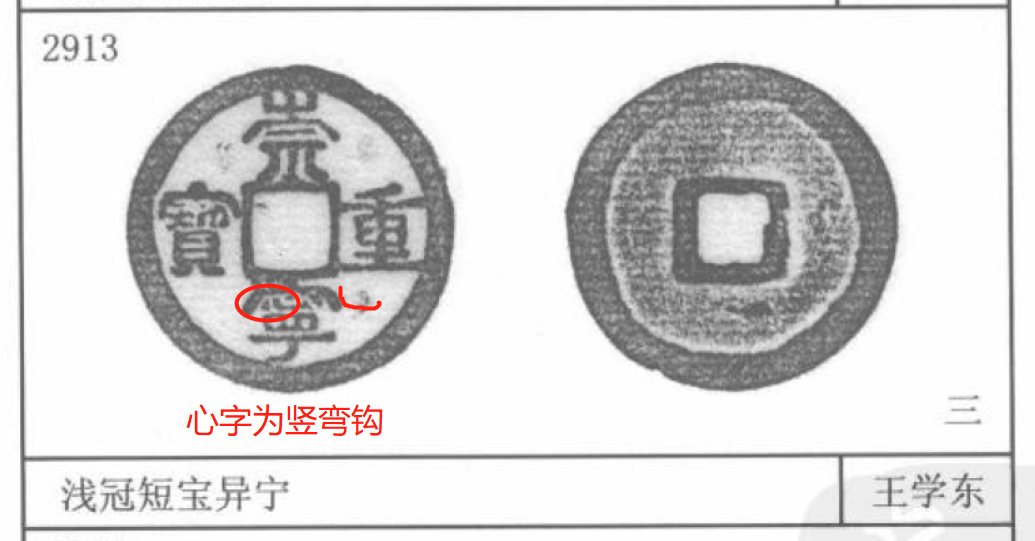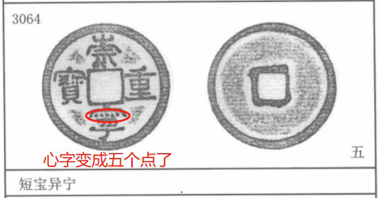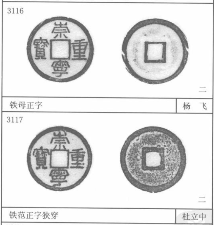 3085号——狭宝狭重。崇宁二字正常而重宝二字狭窄,明显与穿和外缘都不连结。另外还有一个系列的版本叫狭重,版本都很高。