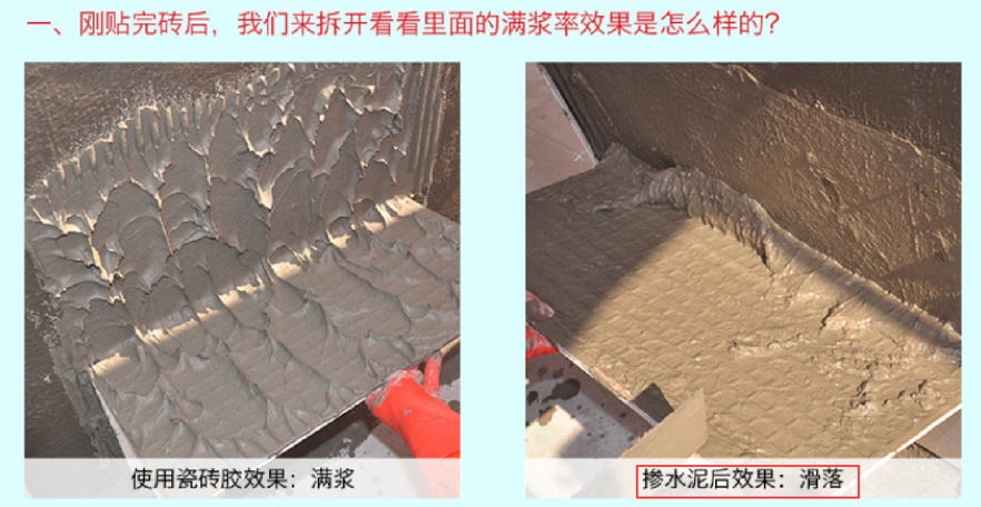 由以上实验得出的结论是:瓷砖胶绝对不能掺入水泥。