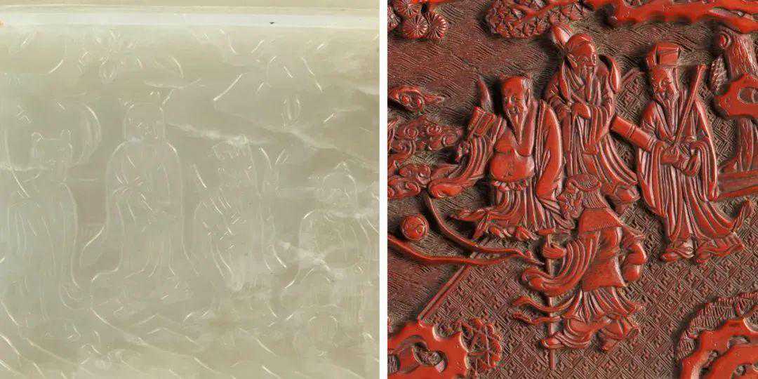 右:晚明漆雕细部,香港邦瀚斯2015春拍23号拍品