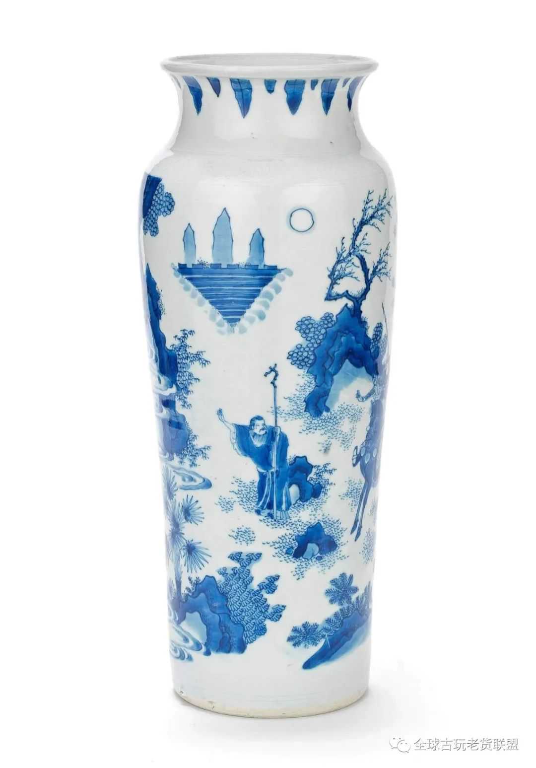 明崇祯青花「三国演义」筒瓶(0.8-1.2万)