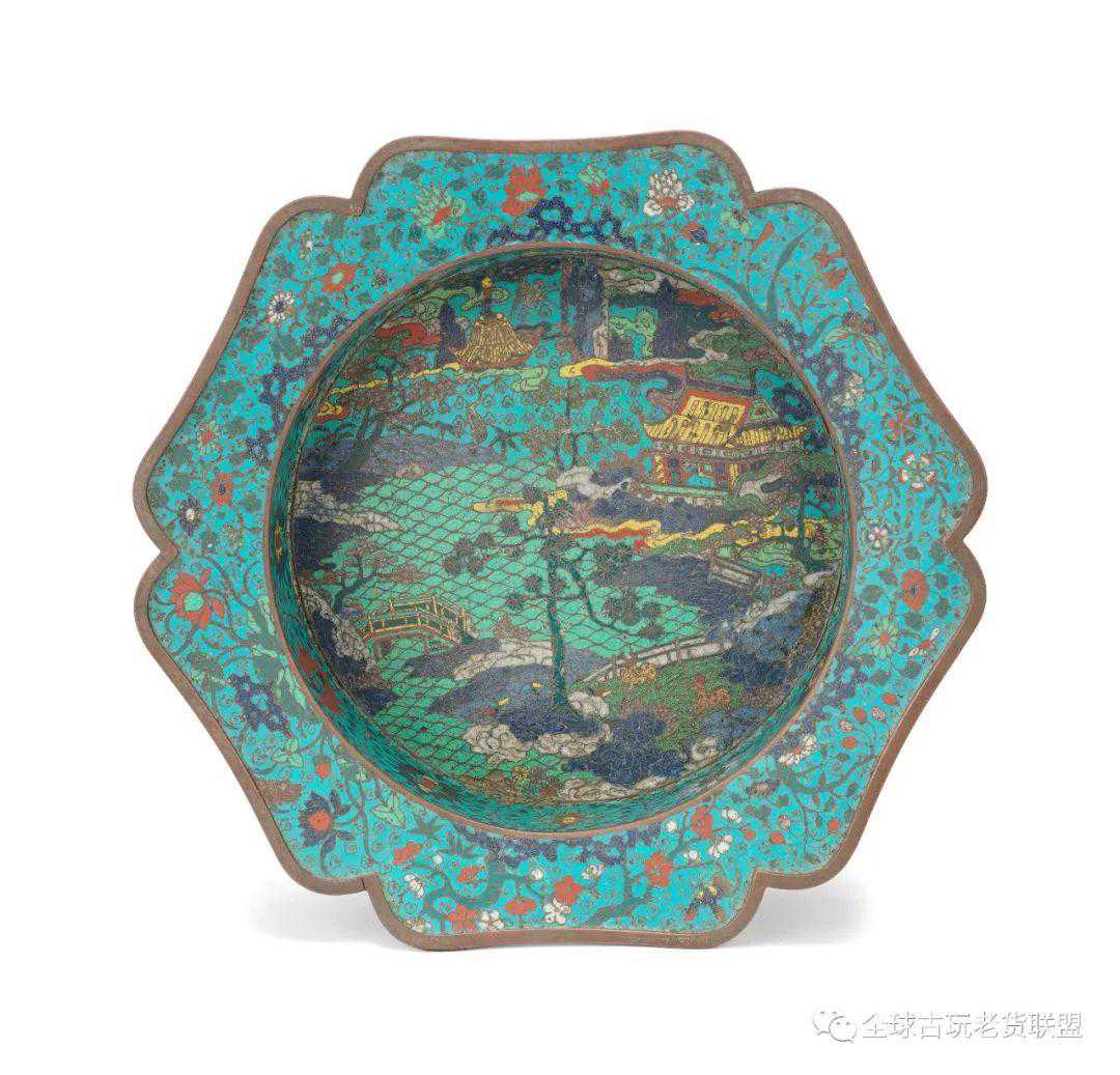 十七/十八世纪掐丝珐琅折沿葵口盆(3-5K)