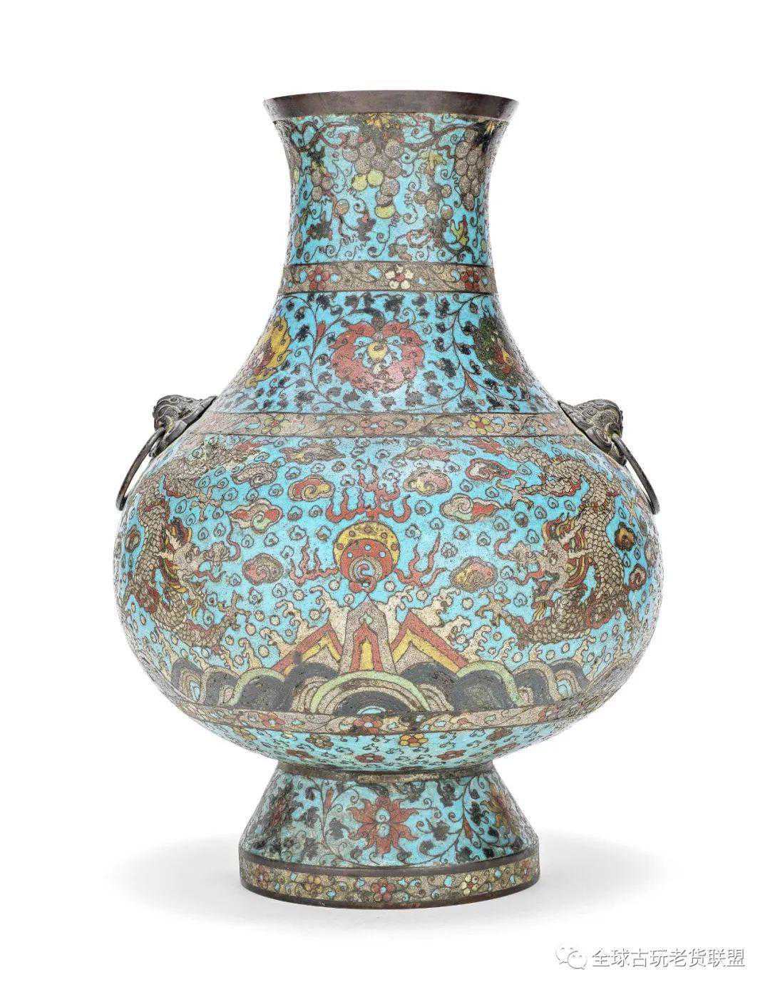 十七世纪掐丝珐琅云龙戏珠纹双兽活环耳壶(2-3K)