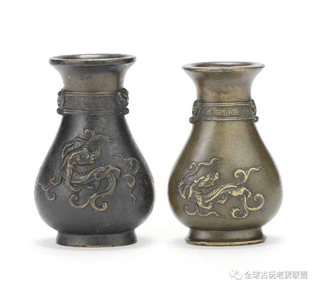 十七世纪铜夔龙小瓶一组两件(1.5-2K)