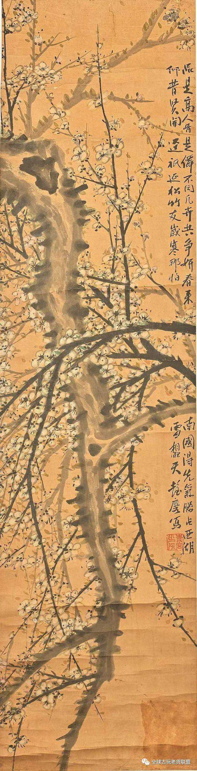 彭玉麟,字雪琴,号退省庵主人、吟香外史,晚清著名政治家、军事家、书画家,人称雪帅,是晚晴中兴四大名臣之一。他爱上了外婆的养女梅姑,但这为当时的礼法所不容。梅姑嫁给了另一个男人,不久即去世了。彭玉麟发誓要完成一万幅梅花图,以纪念他逝去的爱人。书画之外,他还立有赫赫战功。他在岳州和田家镇战役中出力击败了太平军,在其传奇的军事生涯后升任兵部尚书。他的大部分画作都毁于战火,这件作品实属难得一见。