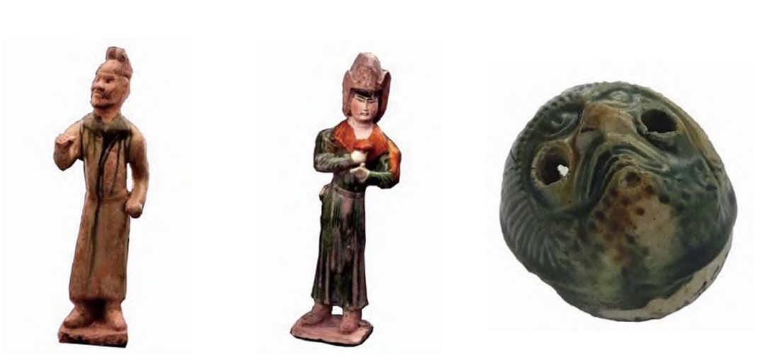 图7唐三彩胡俑(北京艺术博物馆藏)图8唐三彩献宝俑(巩义市博物馆藏)图9唐三彩埙(河南省文物考古研究院藏)