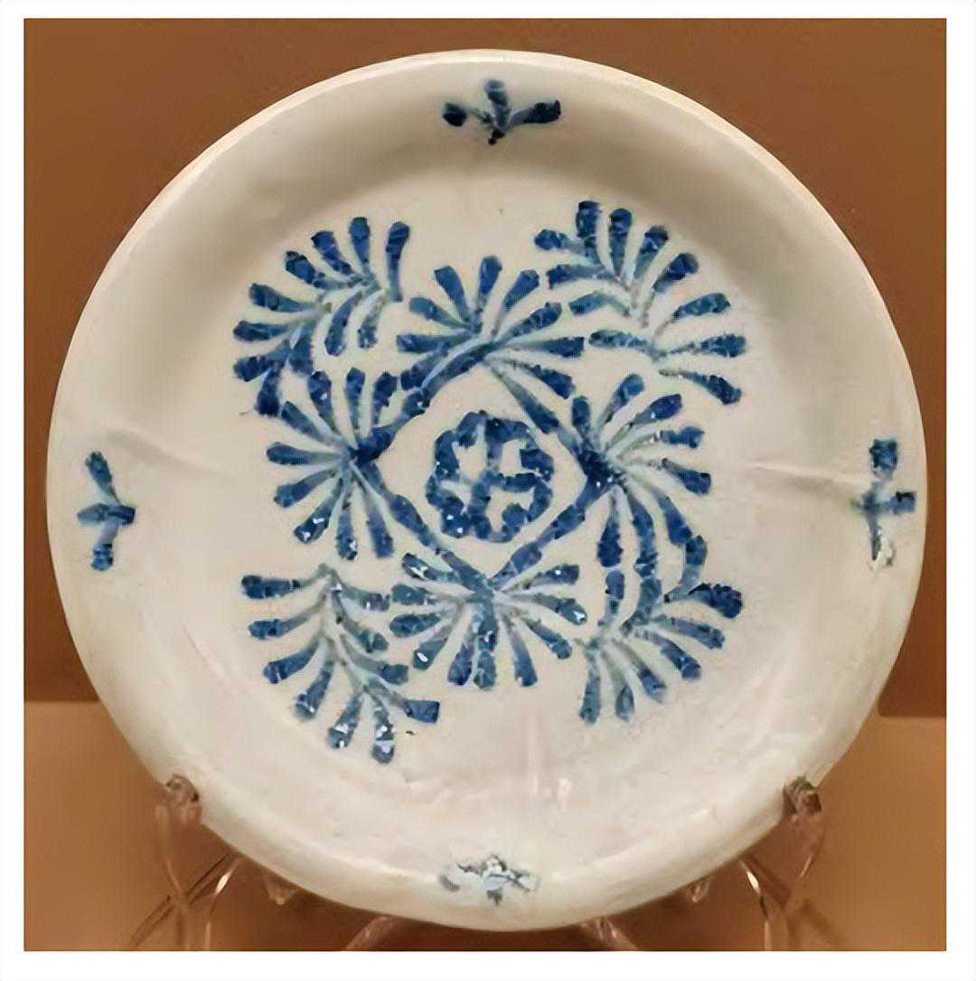 伊斯兰风格对陶瓷装饰的影响主要表现在色彩和纹饰方面,即用蓝色釉彩装点釉面、用棕榈叶(或芭蕉叶)等菱形花叶纹绘制纹饰。