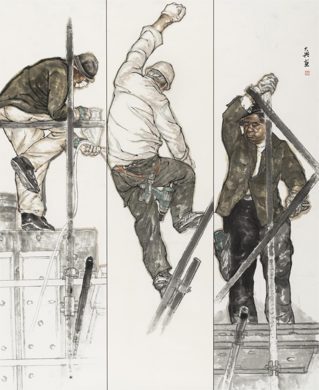 李大兴脚手架上舞春秋220cm×180cm辽宁