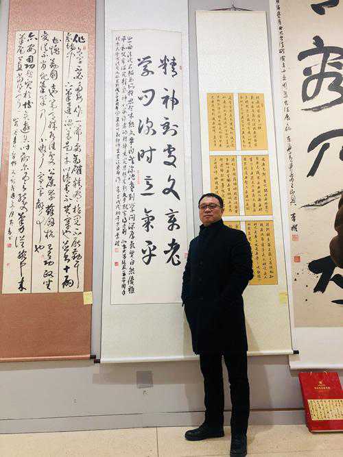 最高人民法院党组副书记、副院长江必新宣布:北京大学书法所王岳川师生书法展开幕