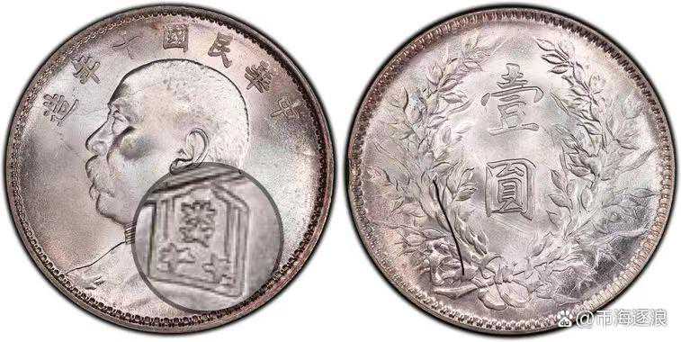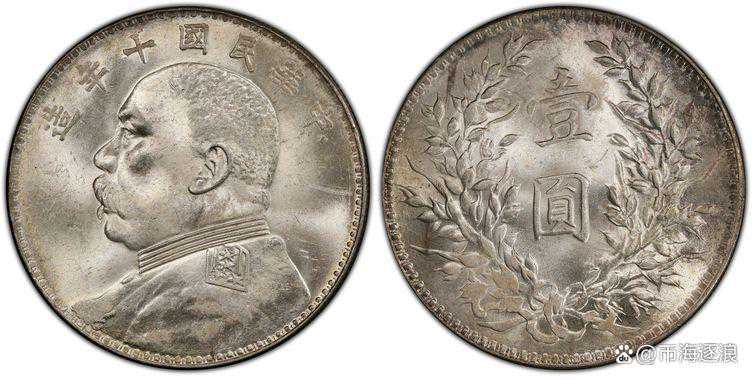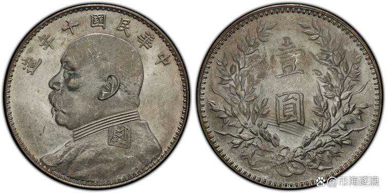8.十年九像肩章这个版本的特征是袁像面上虽然写了十年,但是袁像图案是九年的图案,从头发和肩章出能够很清楚的看出来,下面我会详细介绍一下这个版本,不是因为稀少,而是因为通过这个版本我们可以了解道十年肩章的特别之处。评级公司标注“Typeof1920年NC”