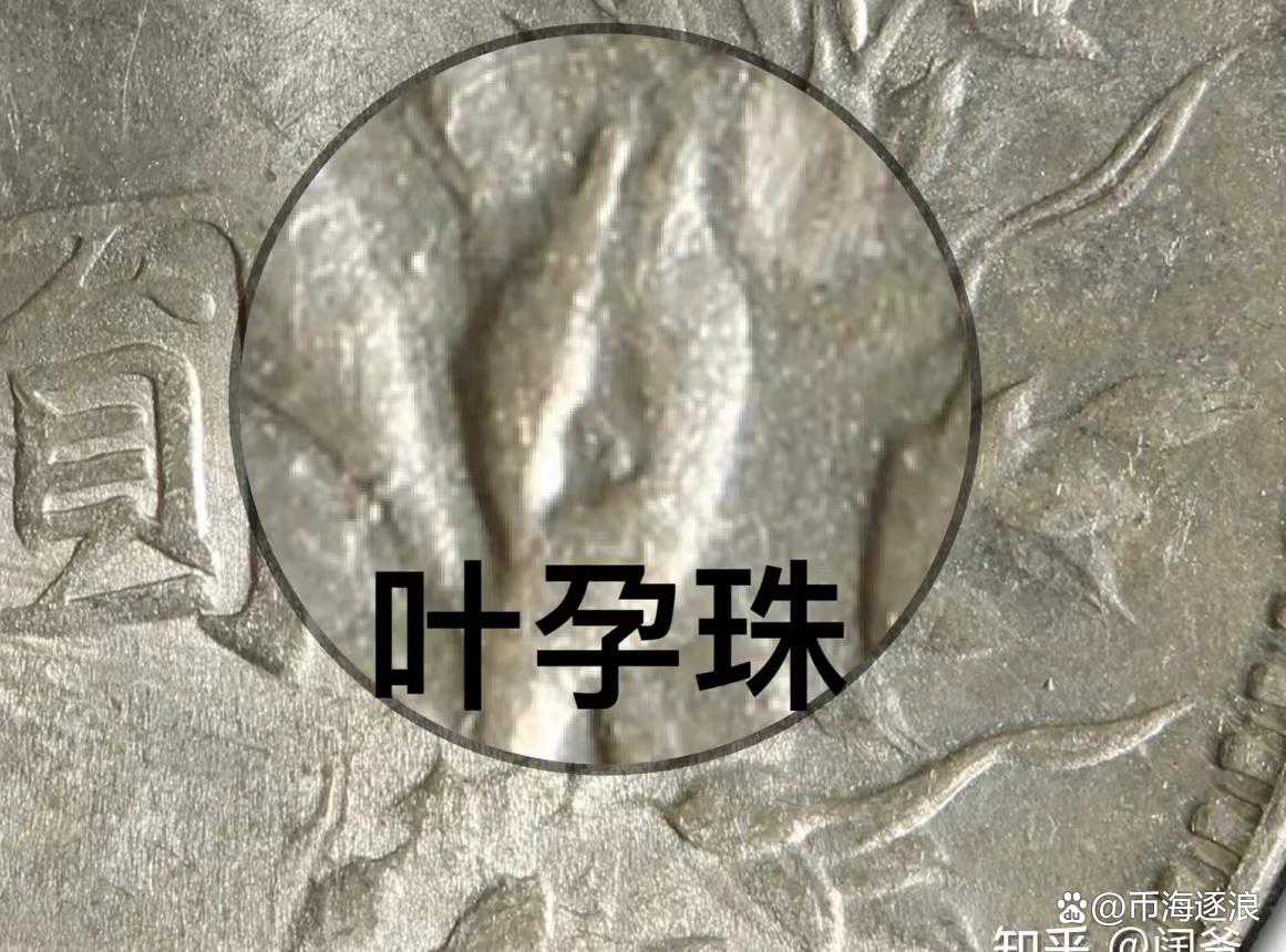 下三珠的位置跟下五珠一样只不过是三个圆珠,叶孕珠是在圆字右侧的一枚嘉禾中有一个圆珠的暗记。同时也有空心叶的标志。