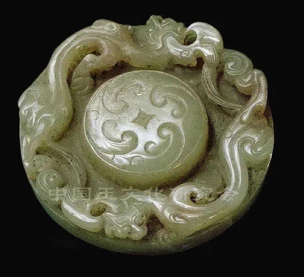 元代青玉螭龙圆牌饰