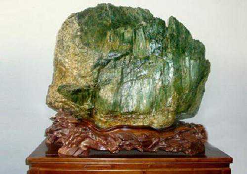 石表:在石肤表面或石缝的夹层间,有针状结晶的,俗称"挂翠",常出现奇峰云谷、空山烟霞、石上清流等景观,具放射状结晶者,有的呈现出奇峰高耸、岭脉延伸之景观,此为佳品。