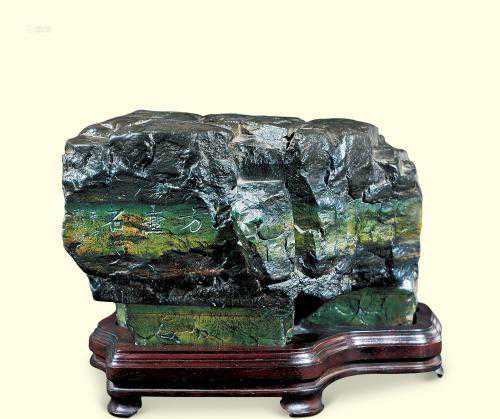 "镶嵌石":石、翠混杂纠结成块,为主要特征的造型石,所展示的是立体的山川景观,或各种抽象形态。