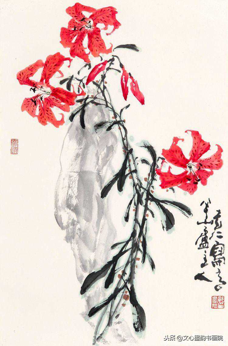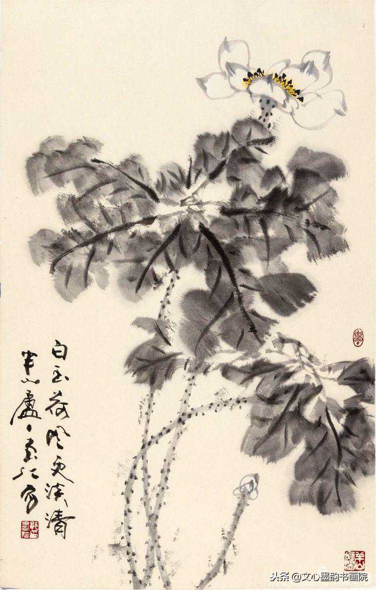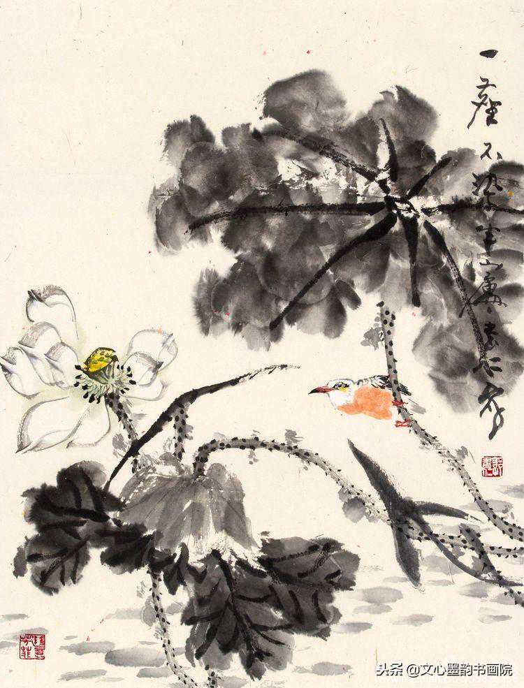 郭书仁画荷,逸笔草草,率真径情,纯净质朴,不假雕饰,可谓有神无迹,臻于化境。飘飘然如得太白遗韵,似白衣处士漫步山川、闹市,气韵高远俊朗,风姿天纵;意态清逸洒脱,卓尔不群。悬之净室,孤灯对坐,则如与青莲对饮,醇香四溢,清气悠远。可与谈古论今,语仙道佛,感悟人生而快意纵情,无所忌惮。其神采灿然中流露出的清朗自信,淡然自若,正是画家精神之所在。周敦颐以花喻人,然古今善画莲者众多,而鲜有得其意者,郭书仁之荷花可谓得之矣。