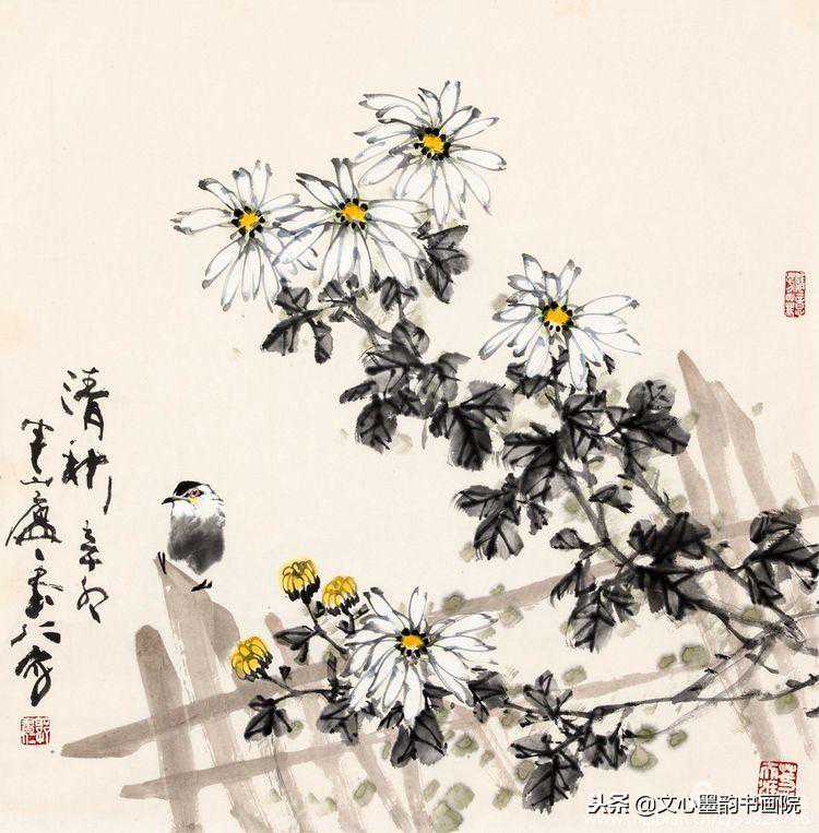强调美与善的内在一致性,是儒家美学的重要特征。我觉得,这也正是郭书仁的为艺之道。善,是他心底盈盈满满的东西,也是他画中盈盈满满的东西。他是以柔和的目光笑看生活、笑看一切的人,因此他的画充满爱意。他对这个世界似乎缺少批判的精神,这使他的作品并不以思想的深刻见长,但面对生活中的善与美,却能以观察的深刻、体验的深刻、表现的深刻占优。善良的心性,加上艺术家的敏锐,使他能那么强烈的感受到、又能那么精妙的表现出花草之美,鸟虫之美,荷塘之美,雪野之美……而这一切,都体现为和谐。既有笔墨、色彩、构图等技法层面的和谐;更有精神层面:花木鸟中以及万物之间的和谐、人与天地自然之间的和谐。他的画深受儒家诗教“温柔敦厚”风格论的影响,追求“不激不厉,风规自远”的境界。这里没有强烈的现代性,但却有深厚的文化意韵。——摘自王全聚《淡雅飘逸格调清新》